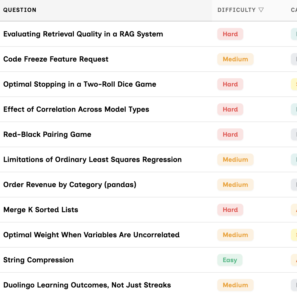 A curated question bank covering coding, SQL, machine learning, system design, and technical reasoning. Each question is designed to build core concepts and problem-solving frameworks, not memorization.